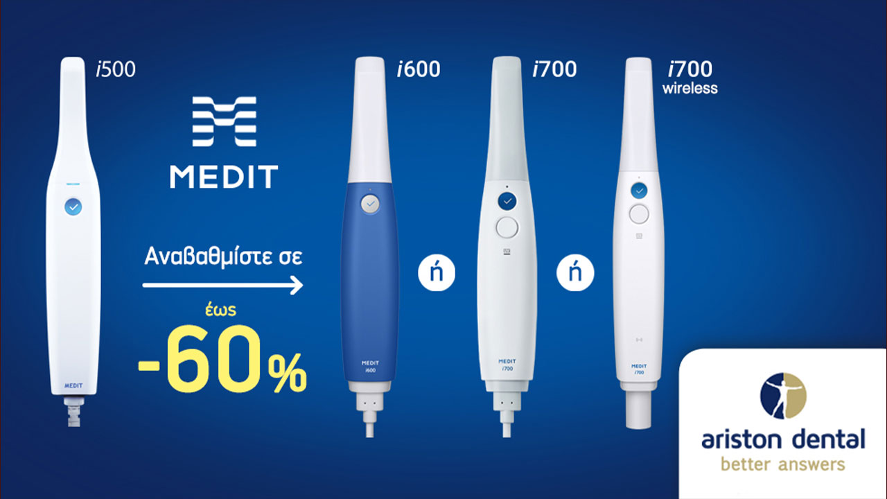 Αναβαθμίστε ψηφιακά το ιατρείο σας! Αντικαταστήστε το 𝗠𝗲𝗱𝗶𝘁 𝗶𝟱𝟬𝟬 ενδοστοματικό 𝘀𝗰𝗮𝗻𝗻𝗲𝗿 σας με ένα από τα ταχύτερα, πιο σύγχρονα μοντέλα 𝗠𝗲𝗱𝗶𝘁 𝗶𝟲𝟬𝟬, 𝗶𝟳𝟬𝟬 ή 𝗶𝟳𝟬𝟬𝘄 με έκπτωση έως 𝟲𝟬%*!