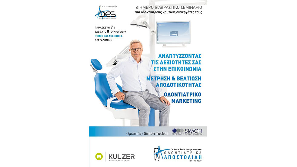 Ελάτε να παρακολουθήσετε το σεμινάριο με τον Simon Tucker πάνω στην τέχνη της επικοινωνίας και προσθέστε στοιχεία στη διαδικασία προσέγγισης του ασθενούς σας!