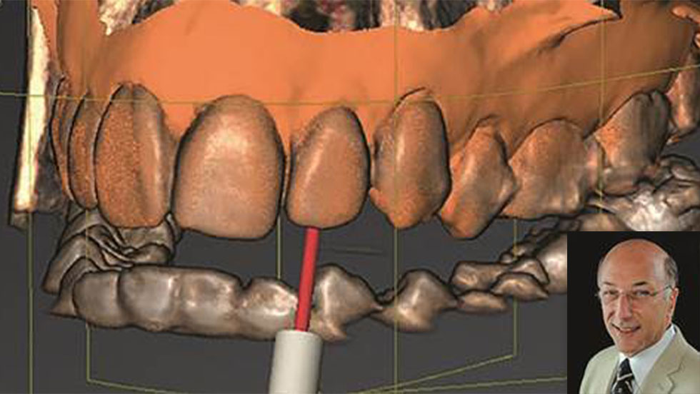 Αφού λάβετε την απεικόνιση CBCT, πάρτε ένα ψηφιακό αποτύπωμα του ίδιου τόξου. Κάντε αλληλεπίθεση των δεδομένων του ψηφιακού αποτυπώματος επάνω στα δεδομένα της σάρωσης CBCT. Επιλέξτε τέσσερα κοινά σημεία και στα δύο τόξα για να ευθυγραμμίσετε τις πληροφορίες. Αφού γίνει το ταίριασμα και η συγχώνευση, η προηγουμένως φανταστική οδός μπορεί να μετρηθεί με ακρίβεια στο λογισμικό από την κορυφή του φύματος μέχρι τον υπολειμματικό ριζικό σωλήνα. Αυτές οι ψηφιακές πληροφορίες είναι έτοιμες να χρησιμοποιηθούν για τη δημιουργία ενός οδηγού. Το επόμενο βήμα είναι να χρησιμοποιηθεί το λογισμικό για τη σχεδίαση ενός άκαμπτου νάρθηκα ο οποίος εφαρμόζει επάνω στη μασητική η την κοπτική επιφάνεια. Ο νάρθηκας πρέπει να εκτείνεται πέραν του θεραπευόμενου δοντιού και προς τις δύο κατευθύνσεις. Αυτή η πρόσθετη διάσταση προσφέρει σταθερότητα κατά την έδραση του νάρθηκα. Στον νάρθηκα σχεδιάζεται ένας χώρος επάνω από το δόντι για να συγκρατήσει έναν μεταλλικό σωληνίσκο 5 mm. Στον υπολογιστή, ευθυγραμμίστε τον σωληνίσκο με την προτεινόμενη διαδρομή. Κατασκευάστε τον νάρθηκα σε έναν τρισδιάστατο εκτυπωτή. Αφού ολοκληρωθεί η κατασκευή του, εισάγετε τον σωληνίσκο στον νάρθηκα. Επιλέγονται τρύπανα τα οποία εφαρμόζουν στην εσωτερική διάμετρο του σωληνίσκου, με βάση του μήκος που απαιτείται για να φθάσει στον υπολειμματικό ριζικό σωλήνα. Ο οδηγός είναι τώρα πλέον ολοκληρωμένος και έτοιμος για χρήση. Η απόσταση από την κορυφή του σωληνίσκου μέχρι τον ορατό ριζικό σωλήνα προσδιορίζεται στον υπολογιστή. Δημιουργείται πρόσβαση διά μέσω του οδηγού με μία χειρολαβή χαμηλής ταχύτητας. Αφού φθάσουμε στον υπολειμματικό ριζικό σωλήνα, η ενδοδοντική θεραπεία ολοκληρώνεται ακολουθώντας τις συνήθεις πρακτικές.