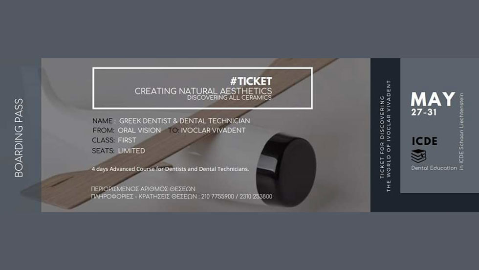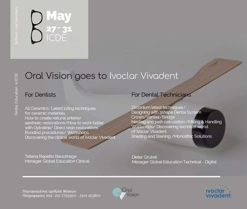 Όσοι επιθυμείτε να αξιοποιήσετε την ευκαιρία που προσφέρει η Oral Vision να γίνεται μέρος αυτού του ταξιδιού και να δείτε από κοντά το εκπαιδευτικό κέντρο ICDE της Ivoclar Vivadent, στο Schaan του Liechtenstein δεν έχετε παρά να επικοινωνήσετε με την Oral Vision για να κλείσετε την θέση σας.