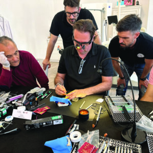 Αφού αναλύθηκαν όλα διεξοδικά, έγινε πρακτική επίδειξη αποκατάστασης IVης ομάδας στο εκμαγείο από τον Μιχάλη δίνοντας έμφαση στην φυσική απόδοση της μορφολογίας και του χρώματος του κεντρικού τομέα που στη συνέχεια πραγματοποίησαν με τη βοήθεια και καθοδήγηση των εκπαιδευτών όλοι οι συμμετέχοντες.