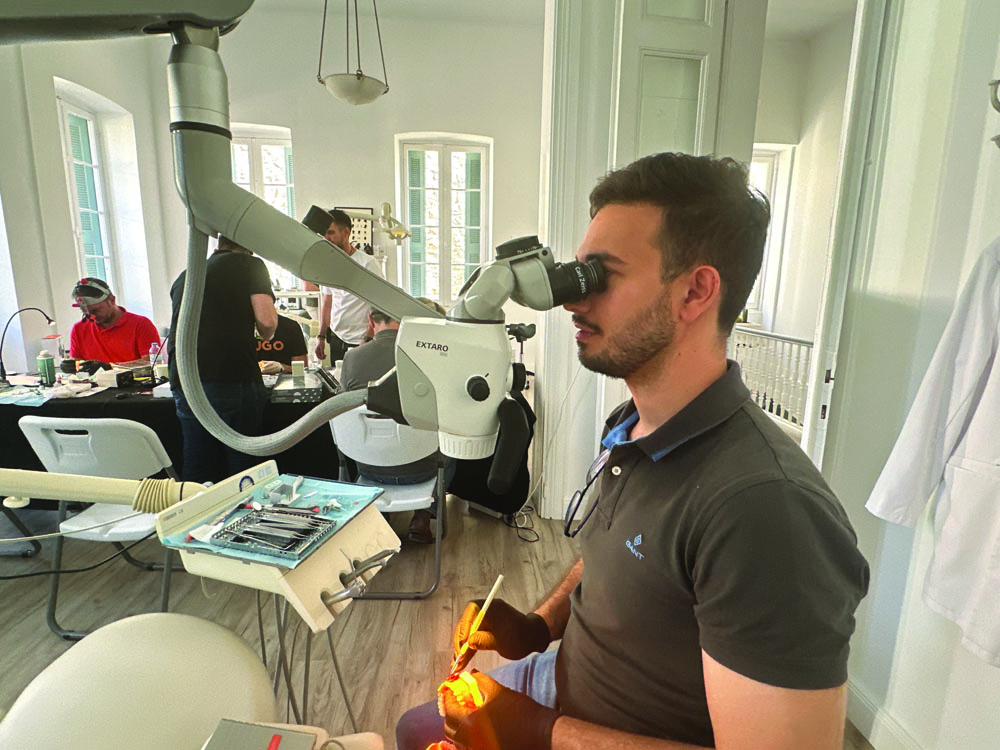 Την τρίτη ημέρα ξεκίνησε ο Δημήτρης Τσανακτσίδης περιγράφοντας τη λειτουργία του μικροσκοπίου. Πλέον ολοένα και περισσότεροι οδοντίατροι και κλινικές στον κόσμο επενδύουν στην αγορά μικροσκοπίων. Το μικροσκόπιο προσφέρει μεγαλύτερη μεγέθυνση από οποιαδήποτε λούπα και καθαρότερη εικόνα λόγω του διαφορετικού τρόπου που το φώς εισέρχεται στον φακό. Επίσης καθιστά τον θεράποντα ικανό να εργαστεί περισσότερη ώρα και πιο ξεκούραστα αφού έχει καλύτερη στάση σώματος κατά την εργασία του. Δόθηκαν διάφορα tips και tricks για την ορθή χρήση του μικροσκοπίου μιας και χρειάζεται προσαρμογή ανάλογα τη διάπλαση και το σωματότυπο του κλινικού. Στη συνέχεια ο Δημήτρης έδειξε όσα παρουσίασε και πρακτικά σε μικροσκόπιο της εταιρείας Zeiss και έδωσε κάποιες ασκήσεις με τις οποίες οι συμμετέχοντες μπορούν να εξασκηθούν στο μικροσκόπιο διότι όπως κάθε τι νέο έχει μια καμπύλη εκμάθησης.