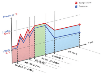 ✔ Αφαίρεση αέρα από τον κάδο αποστείρωσης με χρήση παλμικού ατμού με ομοιόμορφη κατανομή