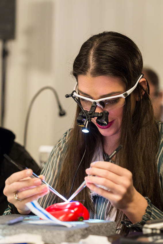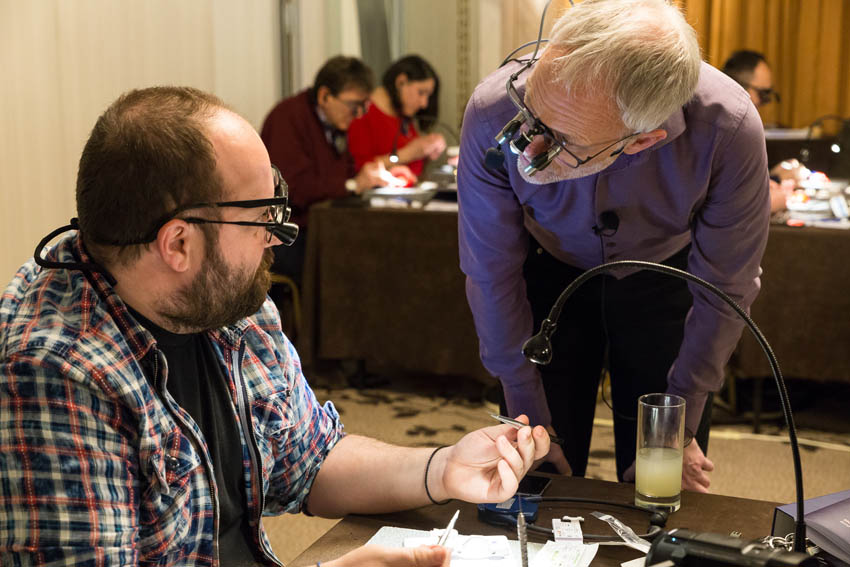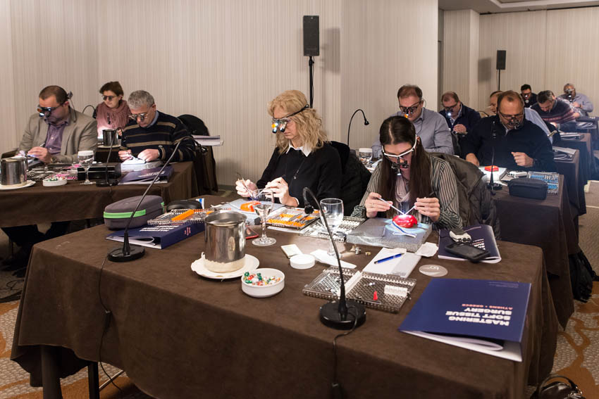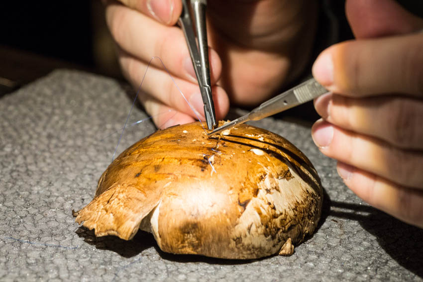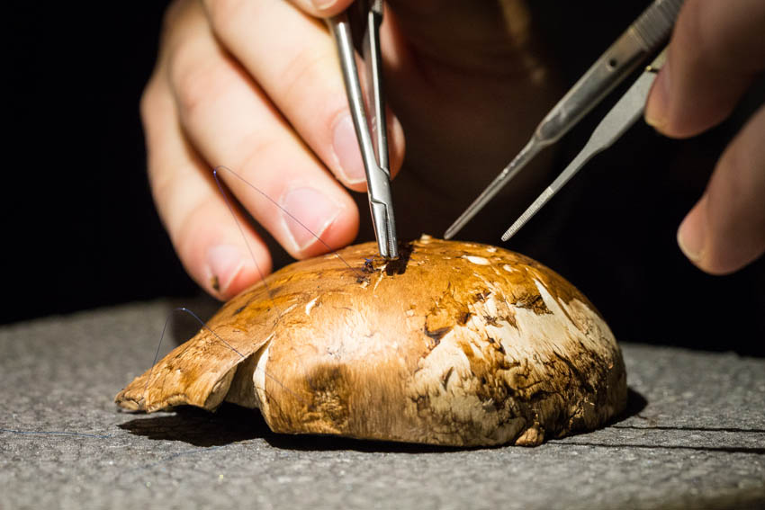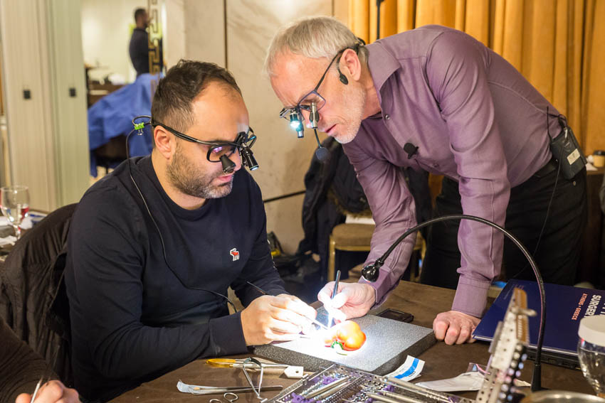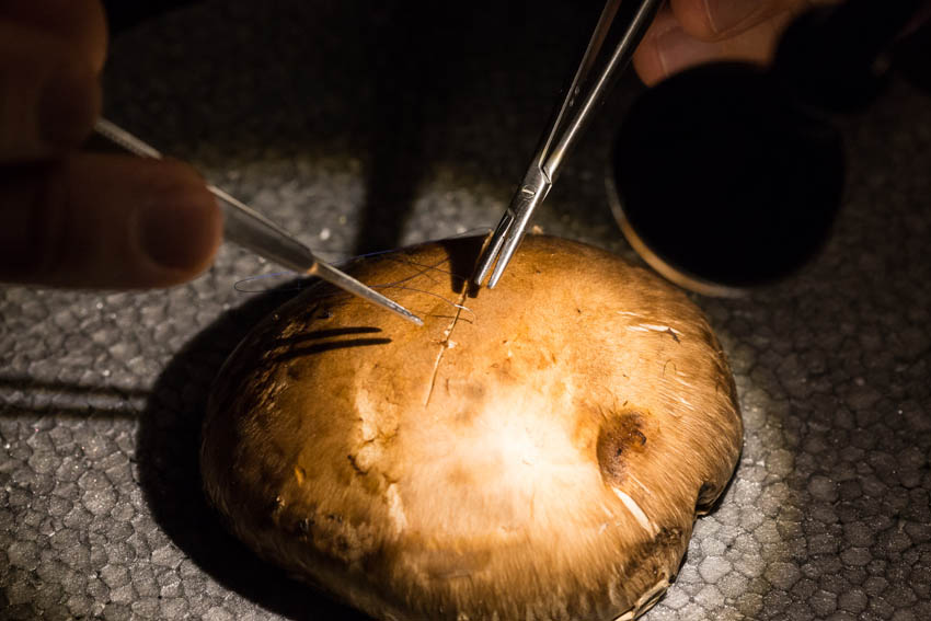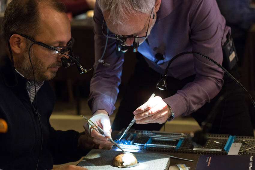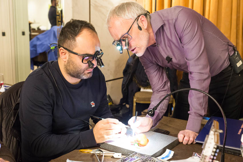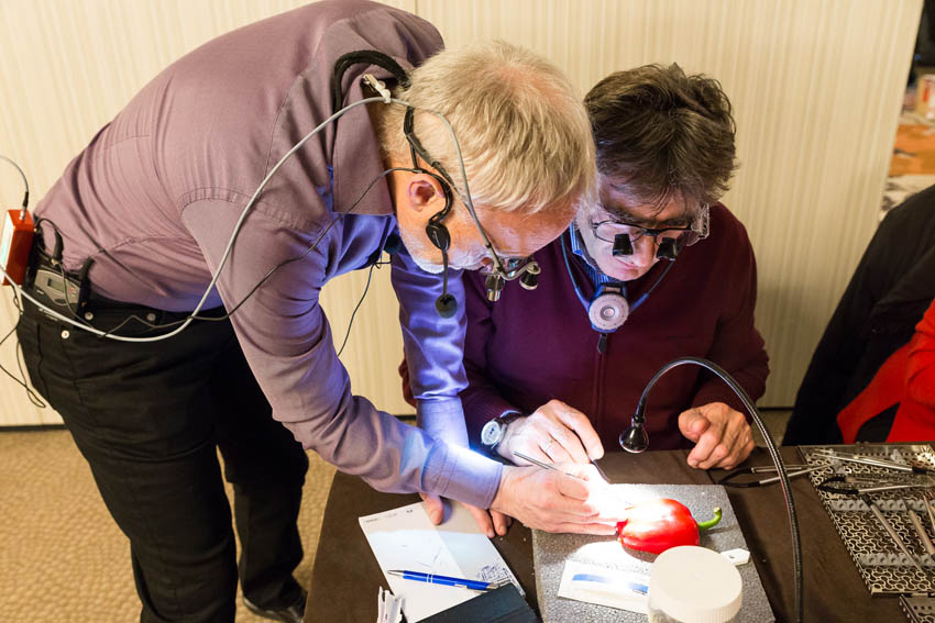 Οι συμμετέχοντες και τις δύο ήμερες μετέφεραν την θεωρία στην πράξη, μέσω ασκήσεων τομών και συρραφών, οι οποίες πραγματοποιήθηκαν σε φρέσκα λαχανικά, γνάθους και αυτιά χοίρων. Επίσης, είχαν την δυνατότητα να γνωρίσουν τον τρόπο εκμάθησης του Swiss Perio Education, αφού μέσω των πρωτοποριακών συσκευών, ο Rino Burkhardt μπορούσε να αξιολογήσει, αλλά και οι ίδιοι να εξελίξουν τεχνικές συρραφής.