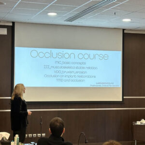 Η Dr. Ίλεια Ρούσσου στο σεμινάριο αυτό εξήγησε τη σημαντικότητα της Σταθερότητας του Στοματογναθικού Συστήματος (ΣΣΣ) και την ανάγκη να ρυθμίζονται οι αποκαταστάσεις στην Μυικά Σταθεροποιούμενη Θέση (ΜΣΘ) που πλέον είναι η νέα κεντρική σχέση!