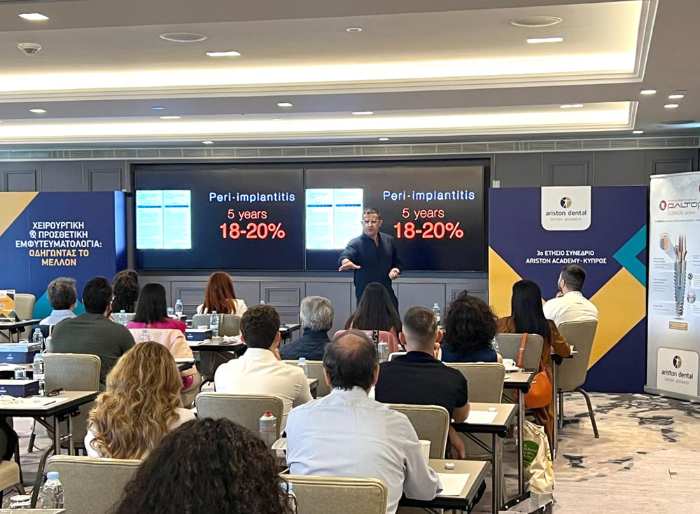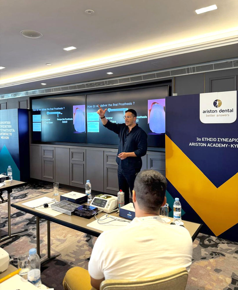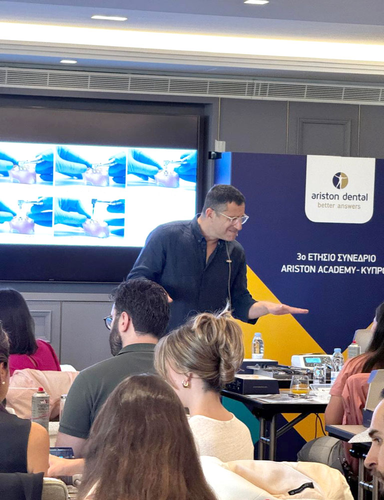 Το συνέδριο που διοργάνωσε η Ariston Dental πραγματοποιήθηκε την Παρασκευή 18 και το Σάββατο 19 Οκτωβρίου στον εκπληκτικό χώρο του PARKLANE, a Luxury Collection Resort & Spa στη Λεμεσό και φιλοξένησε τους διακεκριμένους και έμπειρους διεθνείς ομιλητές: Dr. Mariano Polack, Dr. Minas Leventis, Dr. Ioannis Veregoulis & Dr. Zinonas Evagorou.