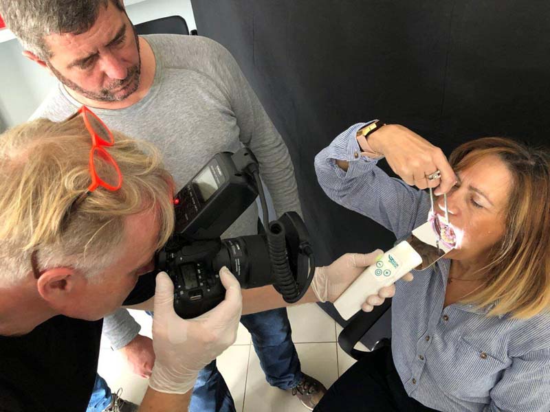 Σημαντική στιγμή του σεμιναρίου αποτέλεσε και η εξάσκηση σε πραγματικό περιστατικό με ασθενή, με λήψη φωτογραφιών της προσθετικής εργασίας, της ασθενούς μετά την τοποθέτηση της εργασίας, καθώς και λήψη φωτογραφιών πορτρέτου από όλους τους συμμετέχοντες.