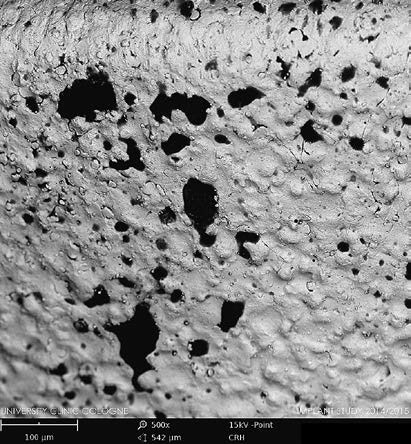 Οργανική ρύπανση σε ένα εμφύτευμα τιτανίου (SEM x500)