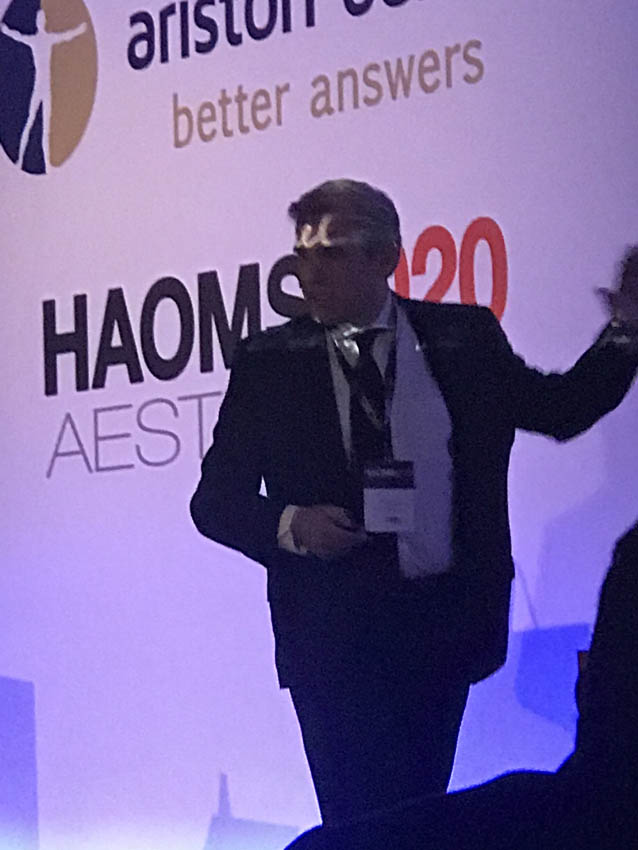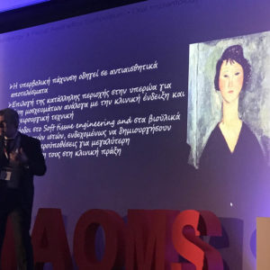 Στη σκηνή του ΗΑΟΜS απολαύσαμε επίσης τον γναθοπροσωπικό χειρουργό, Prof. Dr. Maurice Mommaerts από τις Βρυξέλες, ο οποίος χάρισε απλόχερα στο κοινό γνώση και εμπειρία μέσα από παρουσίαση κλινικών περιστατικών και τις ομιλίες “Facelift without intubation or IV sedation/Lip Lift using suspension micro-screws” και “Patient Specific Facial Contouring Implants”.