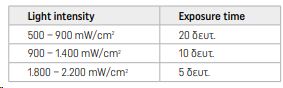 Το συνιστώμενο πάχος ενός στρώματος είναι 2 mm και 1,5 mm για τις αποχρώσεις οδοντίνης (A3.5 Dentin, B2 Dentin).