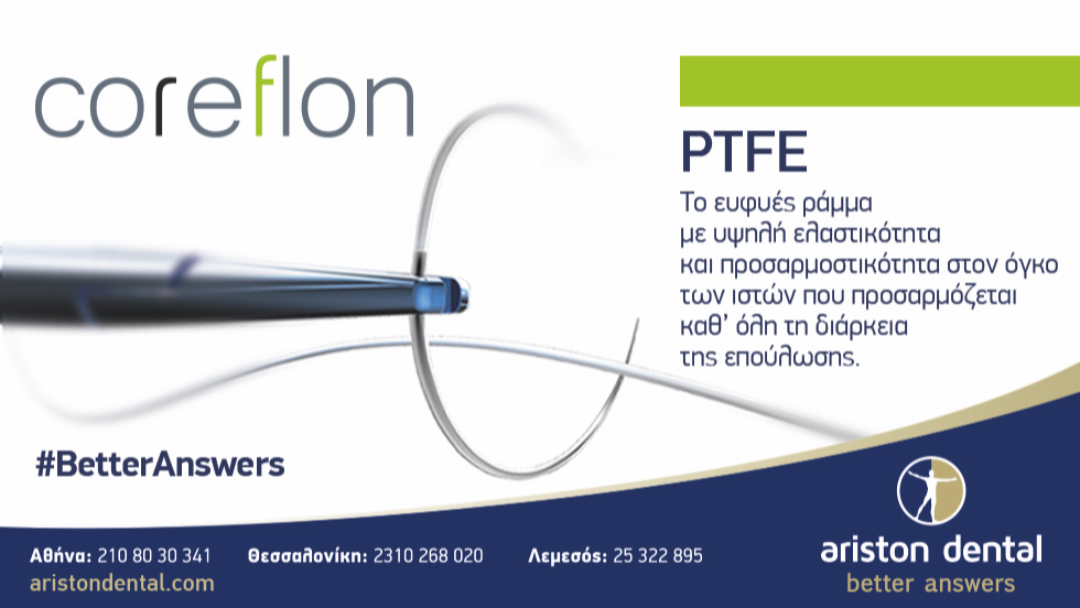 – Παρόλη τη µαλακή και λεπτή του φύση, το Coreflon υποστηρίζει στέρεα του ιστούς καθόλη τη διαδικασία της επούλωσης, σε αντίθεση µε τα απορροφήσιµα υλικά, τα οποία συγκρατούν τους ιστούς µόνο στα αρχικά στάδια της επούλωσης, λόγω της παρουσίας ενζύµων στο στόµα.