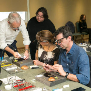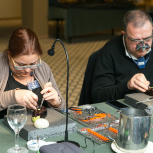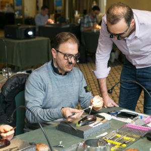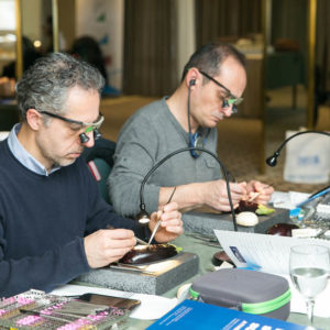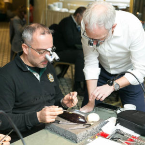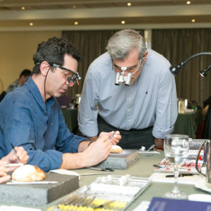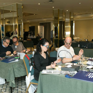 Οι συμμετέχοντες παρακολούθησαν τις παρουσιάσεις των εκπαιδευτών και έλαβαν τη θεωρητική γνώση για τις αρχές διαχείρισης μαλακών ιστών, ενώ στη συνέχεια είχαν την ευκαιρία να εξασκήσουν οι ίδιοι τις γνώσεις τους με την υποστήριξη και την επίβλεψη των εκπαιδευτών, οι οποίοι ήταν κυριολεκτικά πάνω από τα κεφάλια τους, όπως θα δείτε στις φωτογραφίες. Τα αυτιά χοίρων και τα τρυφερά μανιτάρια/μελιτζάνες αποτέλεσαν τον καμβά, όπου οι συμμετέχοντες «ζωγράφισαν» στην μικροχειρουργική, πραγματοποιώντας τις δικές τους τομές και συρραφές.