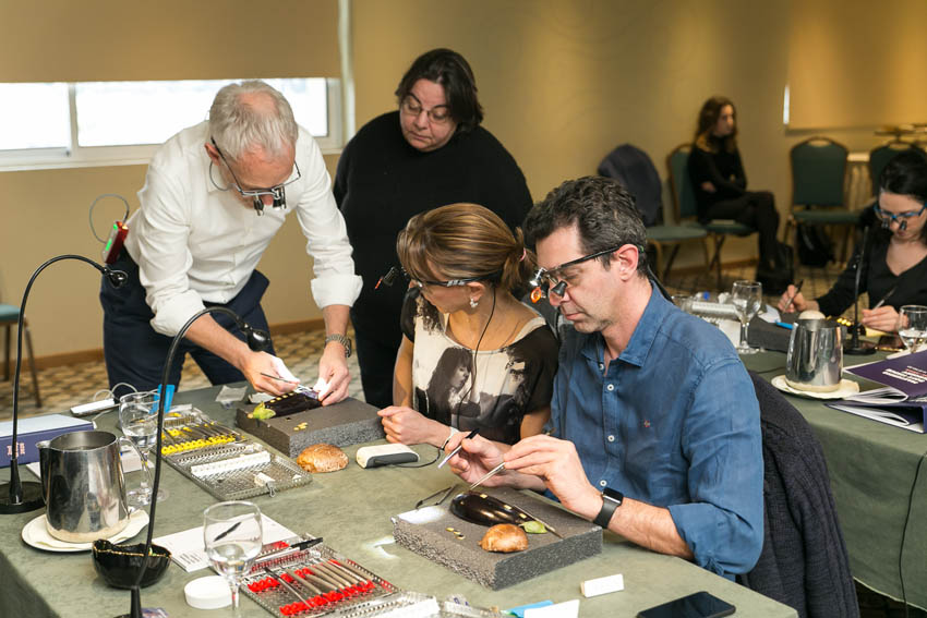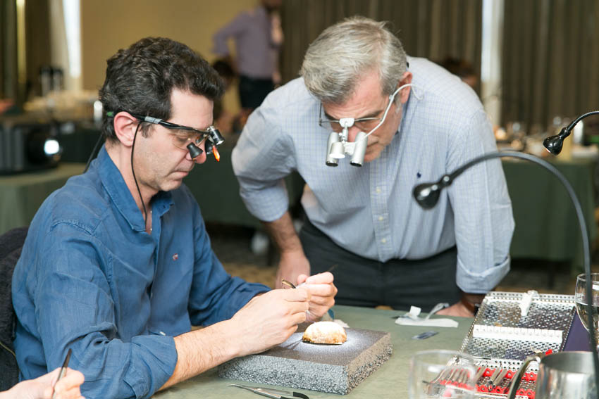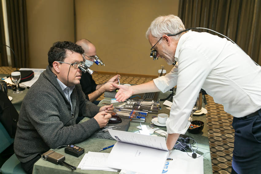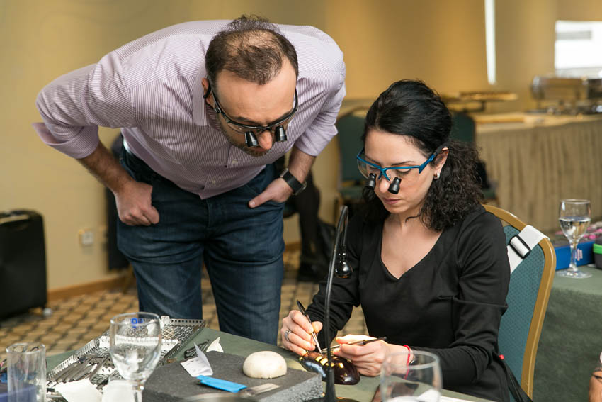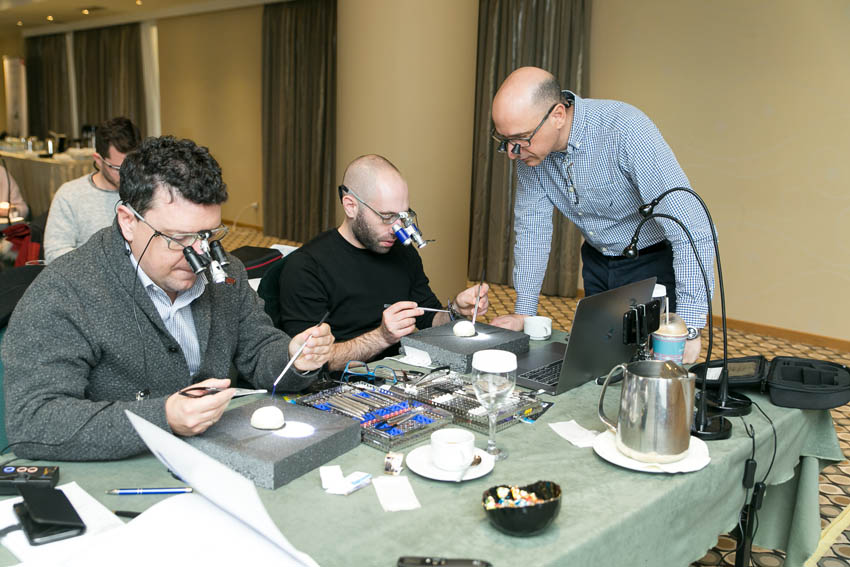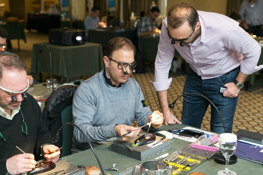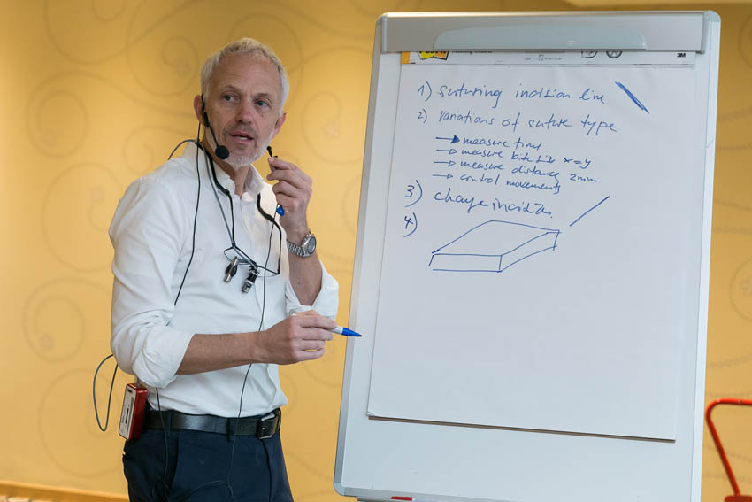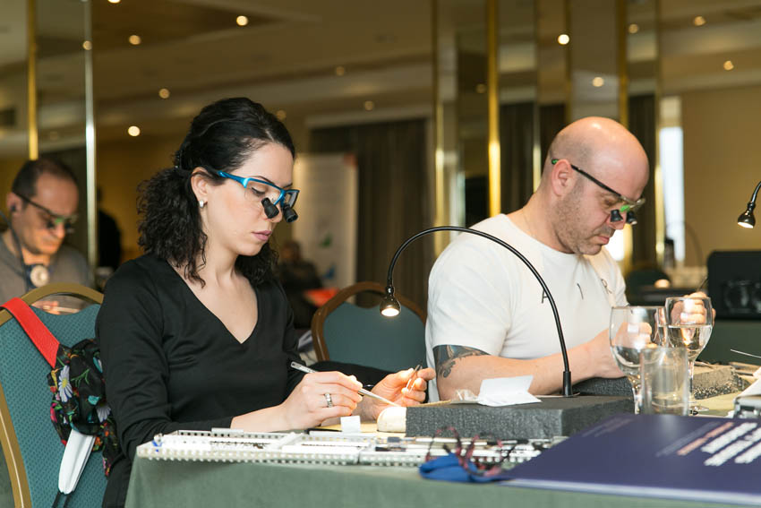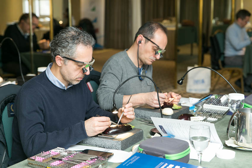 Οι συμμετέχοντες παρακολούθησαν τις παρουσιάσεις των εκπαιδευτών και έλαβαν τη θεωρητική γνώση για τις αρχές διαχείρισης μαλακών ιστών, ενώ στη συνέχεια είχαν την ευκαιρία να εξασκήσουν οι ίδιοι τις γνώσεις τους με την υποστήριξη και την επίβλεψη των εκπαιδευτών, οι οποίοι ήταν κυριολεκτικά πάνω από τα κεφάλια τους, όπως θα δείτε στις φωτογραφίες. Τα αυτιά χοίρων και τα τρυφερά μανιτάρια/μελιτζάνες αποτέλεσαν τον καμβά, όπου οι συμμετέχοντες «ζωγράφισαν» στην μικροχειρουργική, πραγματοποιώντας τις δικές τους τομές και συρραφές.
