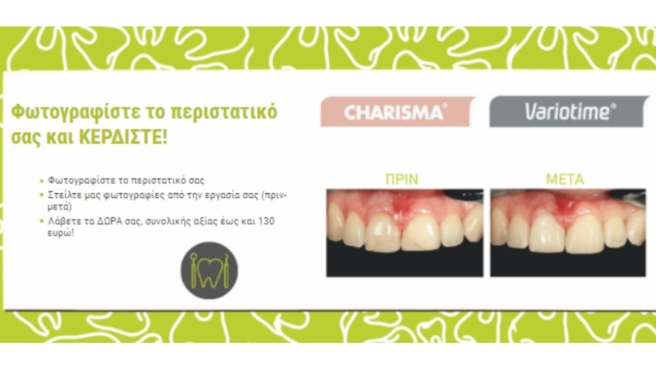 Θα θέλαμε λοιπόν να σας δώσουμε την ευκαιρία να αναδείξετε αυτή την διαδικασία και να μας παρουσιάσετε ένα δικό σας περιστατικό αλλά και τη λύση που δώσατε με τα προϊόντα μας (προϊόντα Charisma ή Variotime). Εμείς από μεριά μας, θα διαφημίσουμε την εργασία σας στην επίσημη σελίδα του Facebook “Kulzer Greece & Cyprus” & στο μηνιαίο ηλεκτρονικό ενημερωτικό δελτίο (newsletter) της Κulzer και θα σας κάνουμε δώρο προϊόντα της οικογένειας Charisma & Variotime συνολικής αξίας έως και 130 ευρώ, για μελλοντικές σας εργασίες!