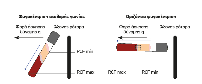 Τα κύτταρα διαχωρίζονται βάση της βαθµιδωτής διαφοράς στην επιτάχυνση της βαρύτητας (g) µεταξύ των RCF–min και RCF–max, δηλαδή µεταξύ των επιπέδων άσκησης της ελάχιστης και της µέγιστης Σχετικής Ισχύος Φυγοκέντρισης (RCF: Relative Centrifugation Force). Η οριζόντια φυγοκέντριση µεγιστοποιεί αυτή τη διαφορά διευκολύνοντας τον αρτιότερο και πιο αποτελεσµατικό διαχωρισµό µεταξύ των στρωµάτων των κυττάρων.