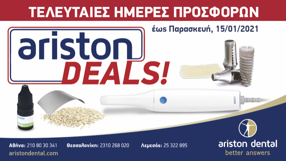 Η Ariston Dental με τη στήριξη των Οίκων που αντιπροσωπεύει παρουσιάζει τις παρακάτω προσφορές.