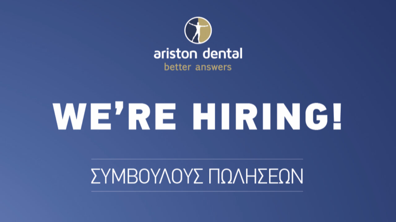 Η Ariston Dental αναζητά για την Αθήνα και την Θεσσαλονίκη 2 συμβούλους πωλήσεων με εμπειρία στην αγορά οδοντοτεχνικών εργαστηρίων για την προώθηση προϊόντων και την ανάπτυξη πελατολογίου.