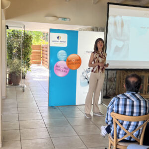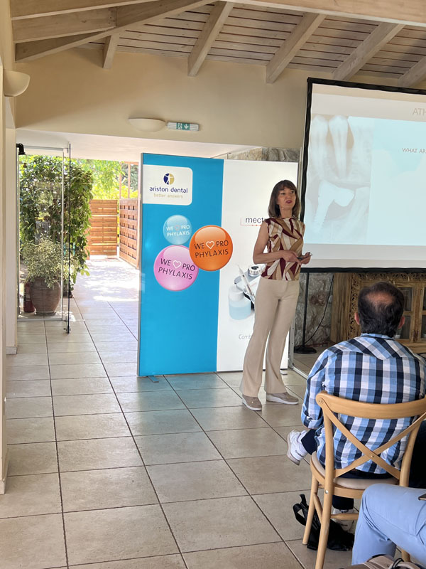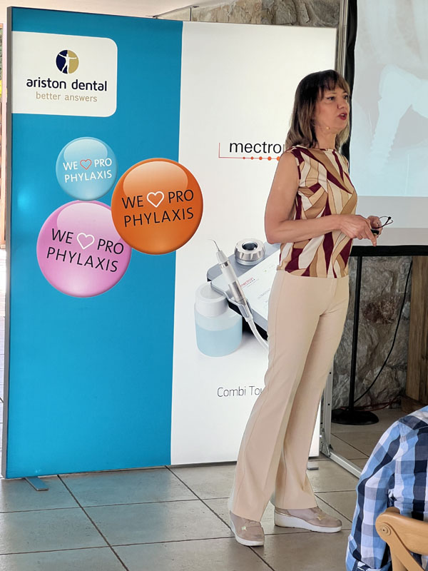 Tο σεμινάριο με τίτλο “Πώς μπορούμε να αντιμετωπίσουμε την Περιοδοντίτιδα & την Περιεμφυτευματίτιδα; Νέες γραμμές θεραπείας” με ομιλήτρια την Dottoressa Maria Gabriella Grusovin έδωσε απαντήσεις στο σπουδαίο θέμα της έγκαιρης Πρόληψης – Προφύλαξης και ανέδειξε το πώς διατηρείται η υγεία των ιστών γύρω από τα δόντια και τα εμφυτεύματα.