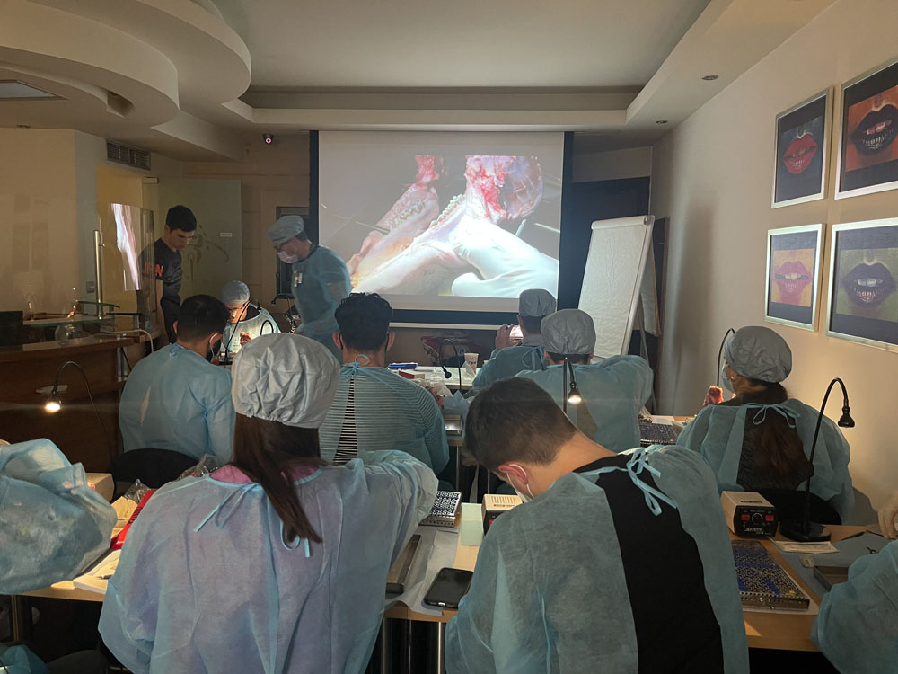 Κάθε συμμετέχοντας είχε την ευκαιρία να κάνει πράξη τα όσα έμαθε πάνω σε γναθους χοίρων έχοντας την επίβλεψη των δύο ομιλητών.