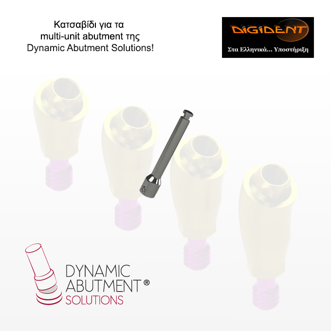 Η Digident, σας ανοίγει την πόρτα στο ΝΕΟ σύστημα Multi-unit abutment από την Dynamic Abutment Solutions! Σας προσφέρουμε το κατσαβίδι κοχλίωσης των Multi-unit abutment το οποίο προσαρμόζεται σε χειρουργικά μοτέρ αλλά και σε καστάνιες. Ακολουθούν περισσότερες πληροφορίες για το σύστημα.