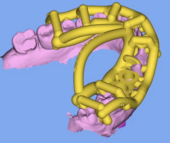 Στο σχεδιαστικό πρόγραμμα 3shape προσαρμόζει τον σχεδιασμό πάνω στην βλεννογόνο και διαμορφώνει το προφίλ ανάδυσης.