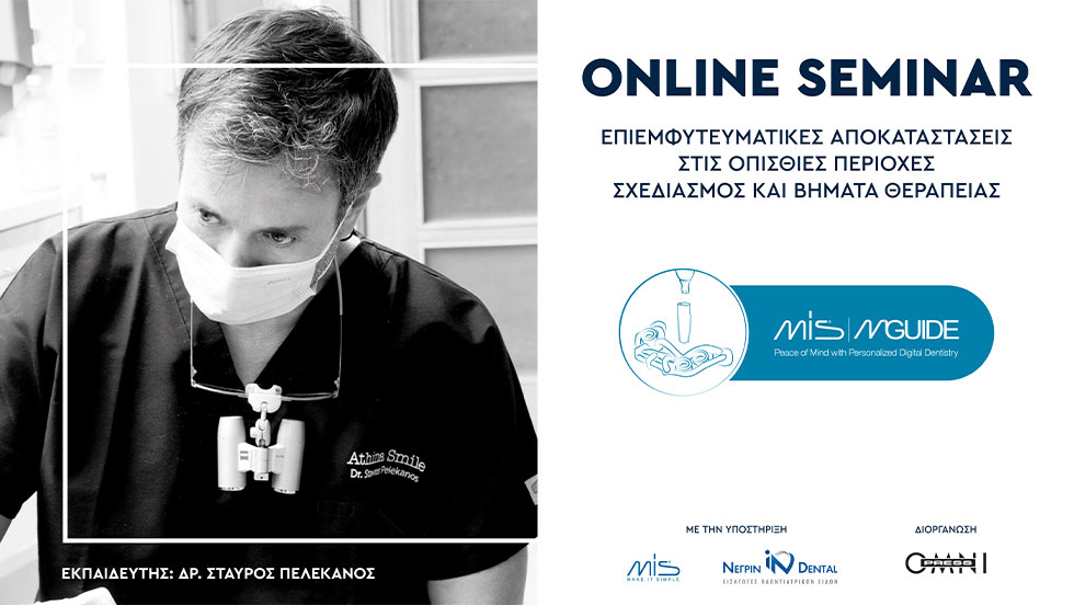 Φυσικά ο λόγος που μας δόθηκε η δυνατότητα να είμαστε παρόντες σε αυτό το χειρουργείο οφείλεται στο τρίωρο live webinar “Επιεμφυτευματικές αποκαταστάσεις στις οπίσθιες περιοχές- Σχεδιασμός και βήματα θεραπείας” που είδαμε δωρεάν μέσω zoom την Παρασκευή 23 Απριλίου από τις έξι ώς τις εννιά. To webinar διοργάνωσε η Omnipress με την αμέριστη υποστήριξη της ΝΕΓΡΙΝ IN Dental, η οποία από το 2002 έχει αποκλειστική συνεργασία με την ΜIS, κορυφαία εταιρία στον χώρο των εμφυτευμάτων και αγαπημένη επιλογή πολλών εμφυτευματολόγων.